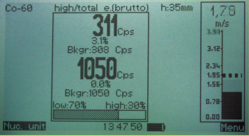 測量值顯示: | cps, Bq 或Bq/m 2 (4個關鍵核素 ) |