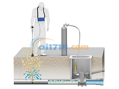 通過消火栓、鉆孔或流量計將示蹤氣體(H2N2)引入管道