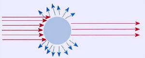 光的散射是自然界中普遍存在的一種物理現(xiàn)象,如果光傳播時(shí)遇到物質(zhì)阻擋,那么它*會(huì)向四面八方散射出頻率相同的光,如下圖所示: